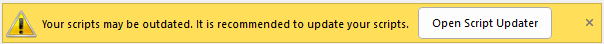 Load a script containing potentially dangerous elements and click Open Script Updater in the displayed banner.