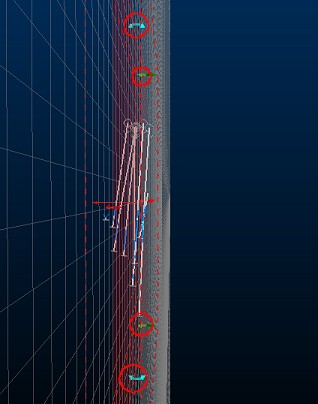 10. In this example, we're going to click and drag one of the green widgets to the left until an easting of approximately 5930.00 is reached (this value appears in the status bar at the bottom of the screen) - the right hand window contents update automatically as the view is locked to the section being moved on the left. In this example, the view appears as follows: