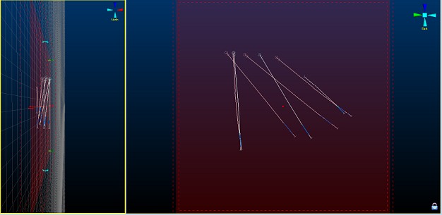 13. The section is moved (using the freeform view) to expose drillholes further into the sample set; as before, click into the freeform view to activate it, and enable the Interactive Section Editor.