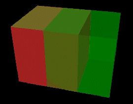 Selecting On for Wireframe 1 (the red cube), produces the result shown in the accompanying image (both source wireframes are transparent for a clearer display of the result):