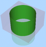 The top surface of Wireframe 2 (the cylinder) is shared with the cube but the bottom end projects below the cube - this is important to demonstrate the difference between the Inside, On and Outside calculations: