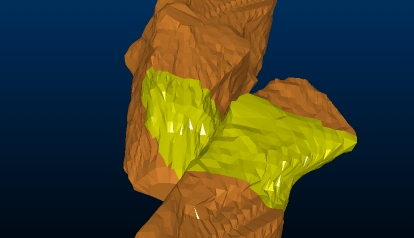 For example, if you want to select the upper section of a cavity wireframe to extend it upwards by 5m (e.g. to encourage a more generous model evaluation), you would enable the Select Individual Triangles project setting: