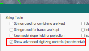 Note: Advanced string controls are ignored and not applied if you are using Auto Node or Rapid Digitize Mode for digitizing.
