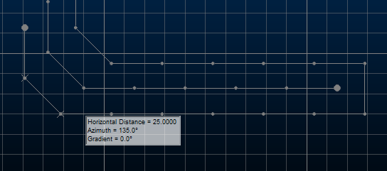 For example, to only permit azimuth changes of 45 degrees whilst drawing, use Angles Multiples of and check both Apply String Constraints and Azimuth. Similarly, ensure all new string segments are of a fixed Length, with the new segment pointing towards the new click positions by only enabling the Length constraint.