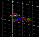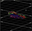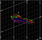 Grids typically indicate dimensions along the axes of the data display. One of the limitations of a standard flat grid is that it is often difficult to sense or interpret the extent of a 3D data object in a direction that is not orthogonal to the view. In the past, this conundrum has been resolved by allowing non-orthogonal grids to be viewed in the Design and Plots windows, and this type of measure is a very useful aid for denoting a measurement that is perpendicular to the viewing direction. For example;