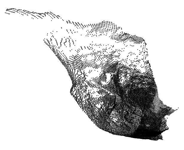 Reconstructs a surface using a fast advancing front method. It can be useful for a rapidly generated initial data preview, particular where input data is dense and regularly spaced. For data that is irregularly spaced (that is, the inter-point distance varies significantly throughout the data, or clusters of outliers exist) one of the other methods is likely to produce more sensible results. It's very quick, but may be imprecise or fail to produce a sensible output for complex data inputs. No additional parameters are supported for this method.