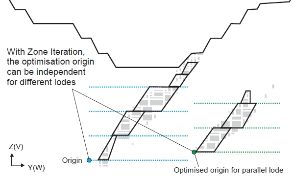 Sections and Level Spacing: the stope-shape framework can then be further refined by also changing the level and/or section spacing dimensions. For framework optimization the stope-shape minimum and maximum size and increment are supplied for the axes specified by the stope orientation plane, and the step size for the origin shift along the same axes.