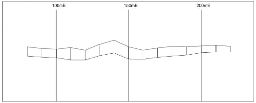 U / V Direction: for these options, the Interval (see below) is not constrained to be on a grid. i.e. shapes will be grouped level by level but not conforming to a grid spacing, just to achieve the target interval. Either of these options will aim to group the stopes at the interval size (regardless of the grid position), but otherwise still work within the min/max stope strike-length limits (Min Range and Max Range).