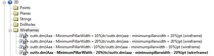 - Outline Strings: the strings used to surface the optimal stope shapes are also output by MSO - you can use these for visualization and evaluation purposes if you wish