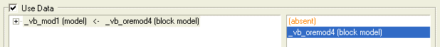 Once selected, a list of all data types in memory that match the type of the one selected (in this case, block models) are listed in the column to the right. Only models of a corresponding type will be listed, and the list will always be headed with an [absent] option - selecting this option denotes that no mapping is to take place. A match will automatically be made if an object in memory matches the file name referenced by the template. In the example above, the model names are different, so no automatic matching is possible and the left hand template object is mapped to [absent].