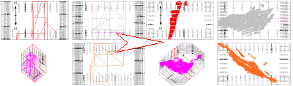 Mapping relates to the way that data stored within a template is used to configure the view of currently loaded plot or log data. Say you had a view of a wireframe shown in four different projections, representing different views through the data body. As these views cover the full panorama of the wireframe, you may find it useful to present other wireframes in a similar way. By storing a template, the view directions of each projection are stored and applied when that template is inserted into your project, providing a wireframe object exists in memory and it is mapped to the original object.