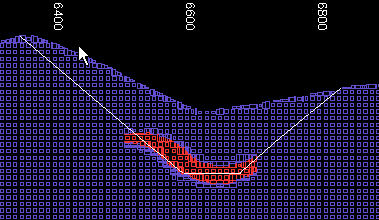 Block model portion inside pit. |