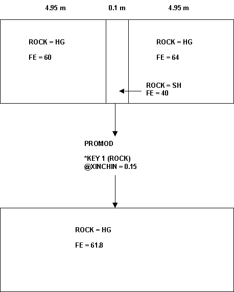 PROMOD would then be run with *KEY1(GEOCAT). A similar approach would be used for alphanumerical codes (e.g. to combine SH with WST).