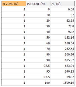 The first stage of the QUANTILE process is to apply the cutoff grade as specified by parameter CUTOFF. Any sample below the cutoff grade is removed from the analysis. Using the default cutoff grade of 0 in effect means that no cutoff is used.