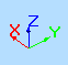 The Axis Indicator is a viewing aid and is used to show the relative orientation of X, Y and Z world coordinate axes in the active 3D window. It looks like this: