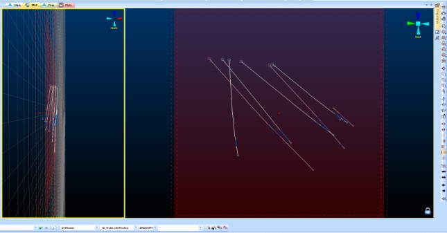 One of the great improvements made with the advent of Studio RM (and subsequently in Studio EM, OP and UG) was the ability to create a standalone, floating 3D window that is dynamically linked to all other views, including locked sections. All of these windows are 'live' in that they can be used for digitizing, editing and other purposes. Once set up, you can digitize in true 3D by using multiple windows to create data points, even within the same command. See External 3D Views