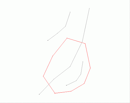 In the following example, the red perimeter (closed string) is used to clip the grey string data.
