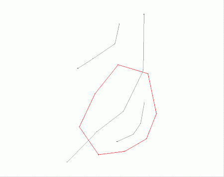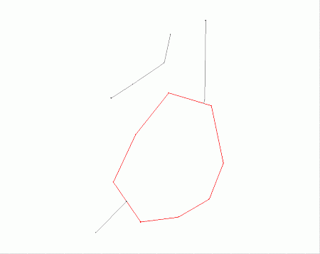 In the following example, the red perimeter (closed string) is used to clip the grey string data.