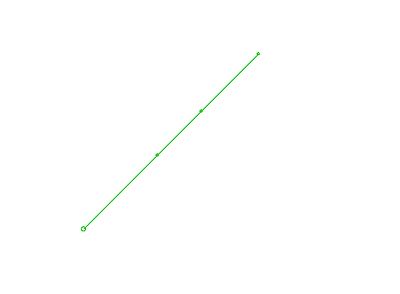 In the following example, points have been inserted in the 200m long string using a 50m spacing, by selecting without snapping (left-click) at the two points shown below. The result is shown on the right: