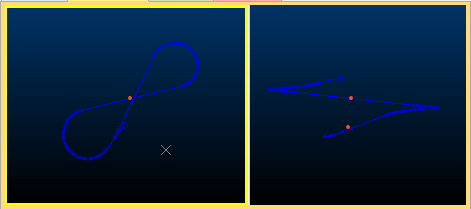 The above example relates to a planar string. In other situations, overlaps can occur along the line of view but may be deliberate. An example of this is a decline string. Consider the example below, where a decline string provides access to different levels. Viewed in plan, there are overlaps not present when viewed from the side. You control whether an overlap is deemed intentional or not using the Overlap distance field: