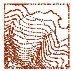 1. Load a set of topography strings into the 3D window. View the topography strings in a plan view: