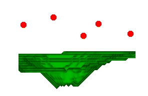 For example, in the following image, 3 points are positioned above a wireframe surface, and were defined from a side (east-west) view.