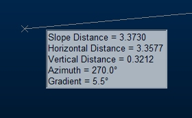 If cursor tooltips are enabled, summary information is displayed on screen at the cursor location, after the first point has been digitized:
