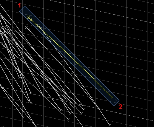 (1), then dragging to point 2, allows a single drillhole to be selected.