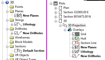 The current overlays in the 3D window are converted to corresponding overlays in all available Plot sheets e.g.: