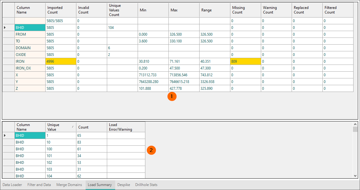 - Load Summary Table – shows an overview of the data and any errors and warnings.