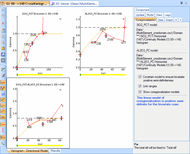 Note: You can still manually refine your model with Constrain model to ensure bivariate positive semi-definiteness enabled by moving the cross variogram structures around, but only within the bounds of a valid solution.